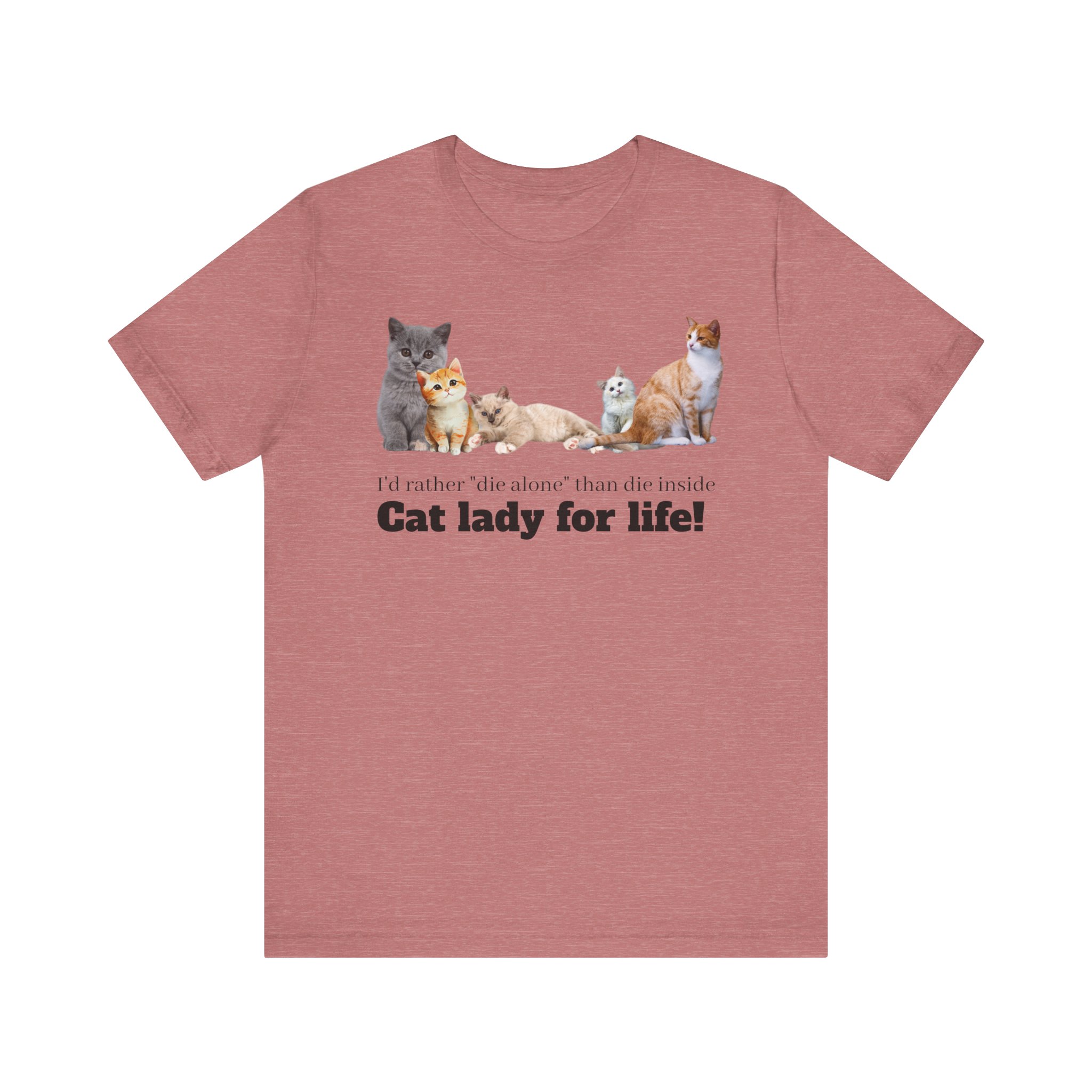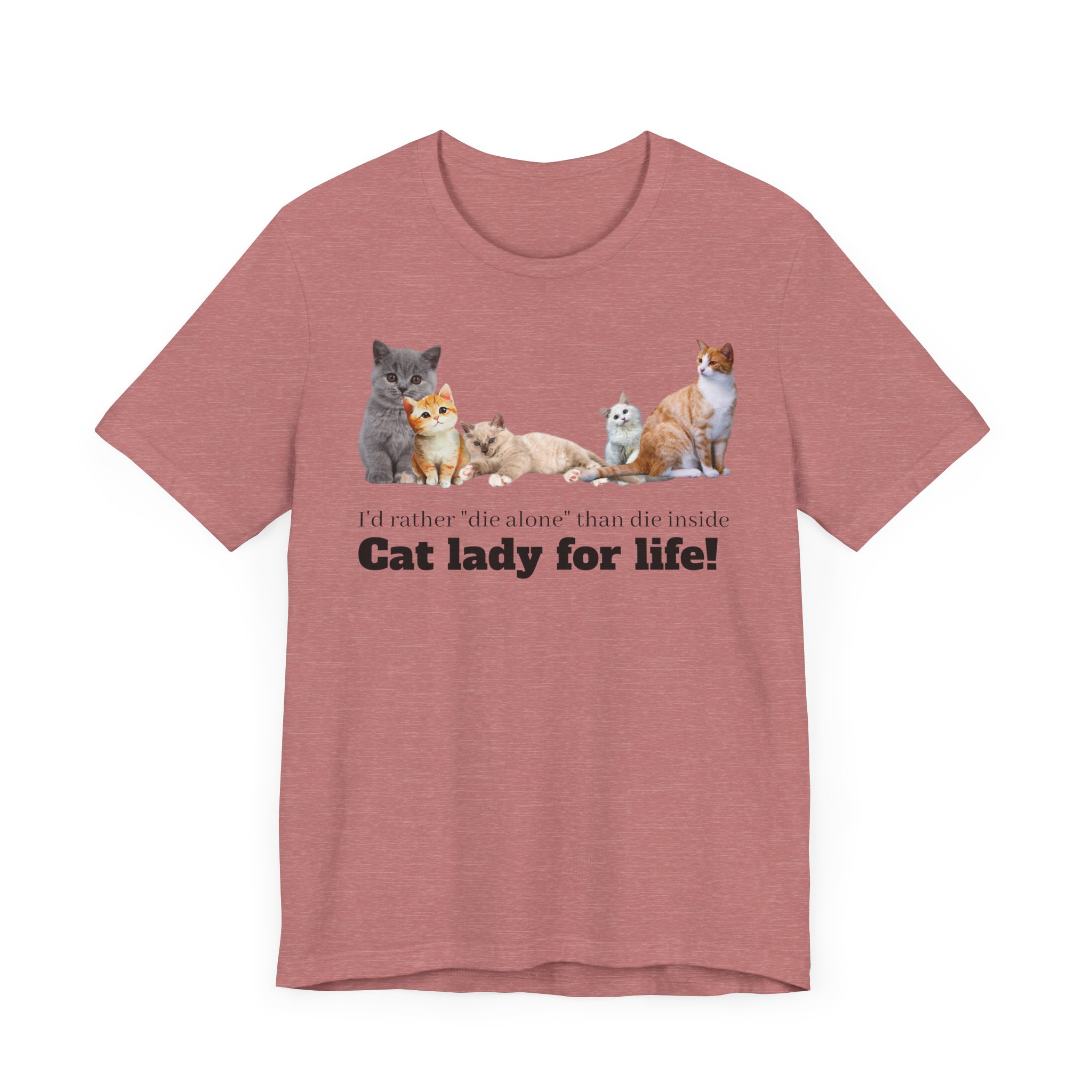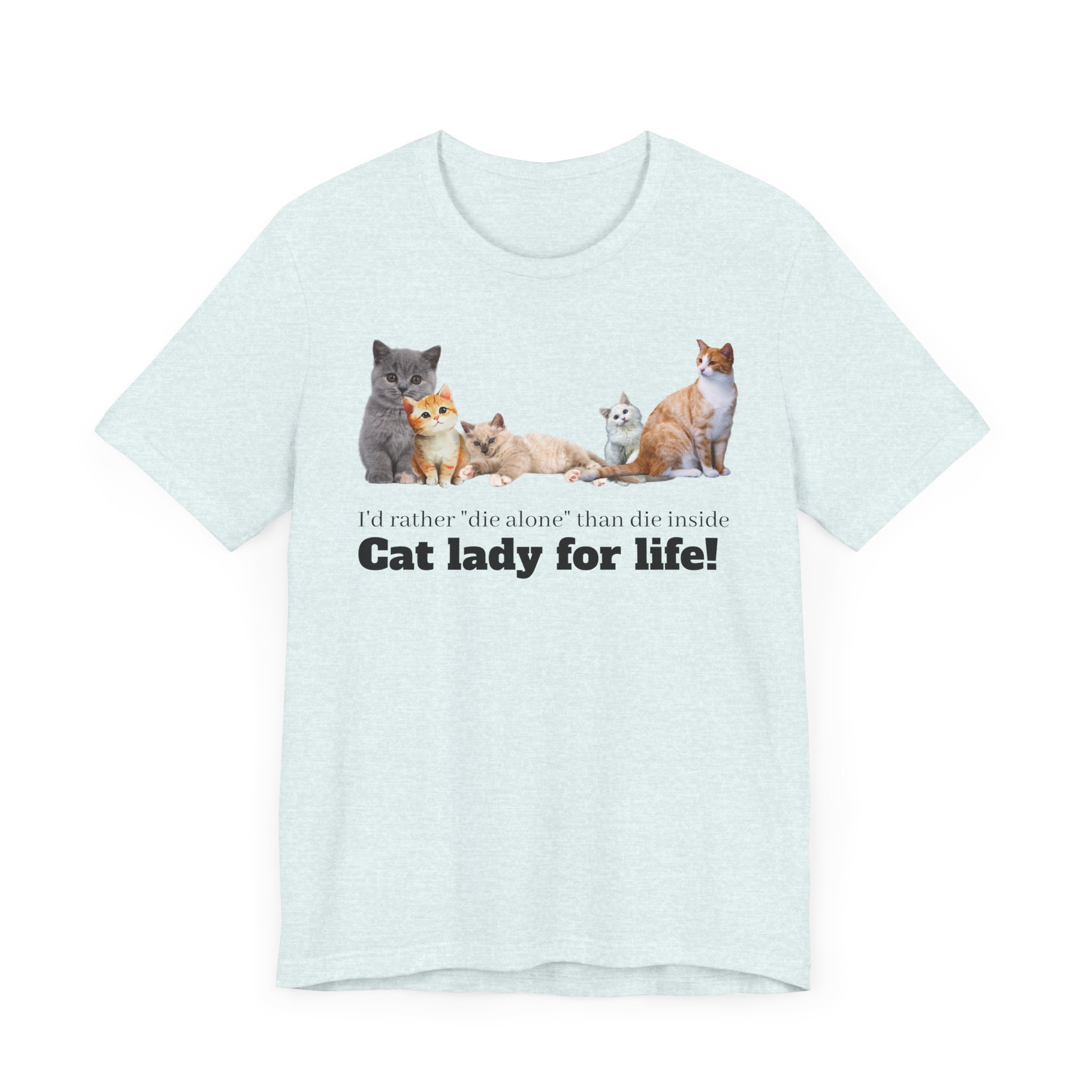 This comfy, cat-tastic tee is a statement piece for the independent woman who chooses to live life on her own terms; with or without cats and definitely without a man. This classic unisex jersey short sleeve tee fits like a well-loved favorite and comes slightly distressed (but in a good way). These t-shirts have-ribbed knit collars and the shoulders are tapered for a fit that softens into you every time you wear it; double side seams help this shirt maintain its shape over multiple launderings, making it a perfect choice for your new favorite shirt. Embrace your girl power and smash the patriarchy because you know that a cats are much better room mates than men anyway. Why buy the cow when you can just buy milk by the carton? Cats love milk don’t they? Either way, there need be no man in the equation