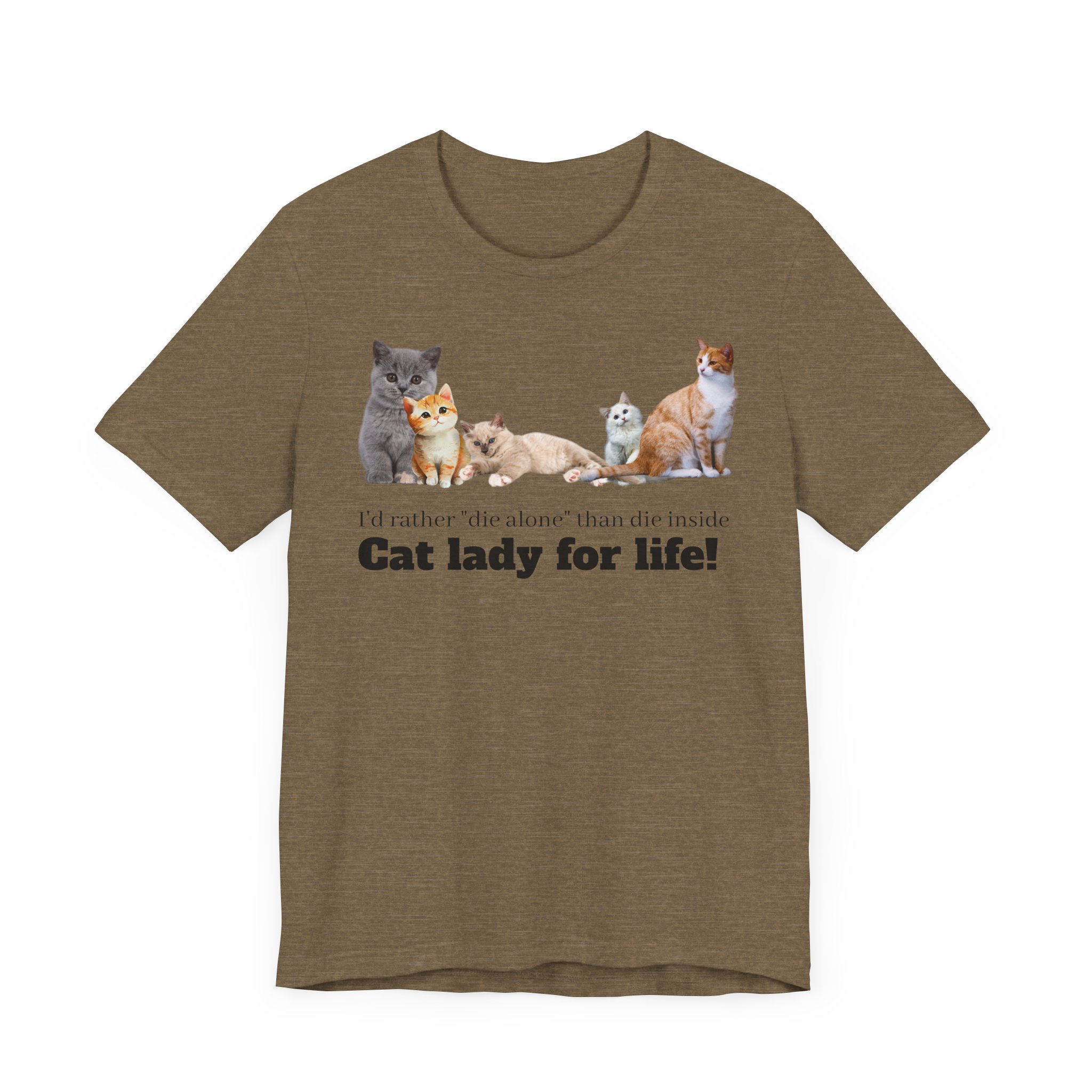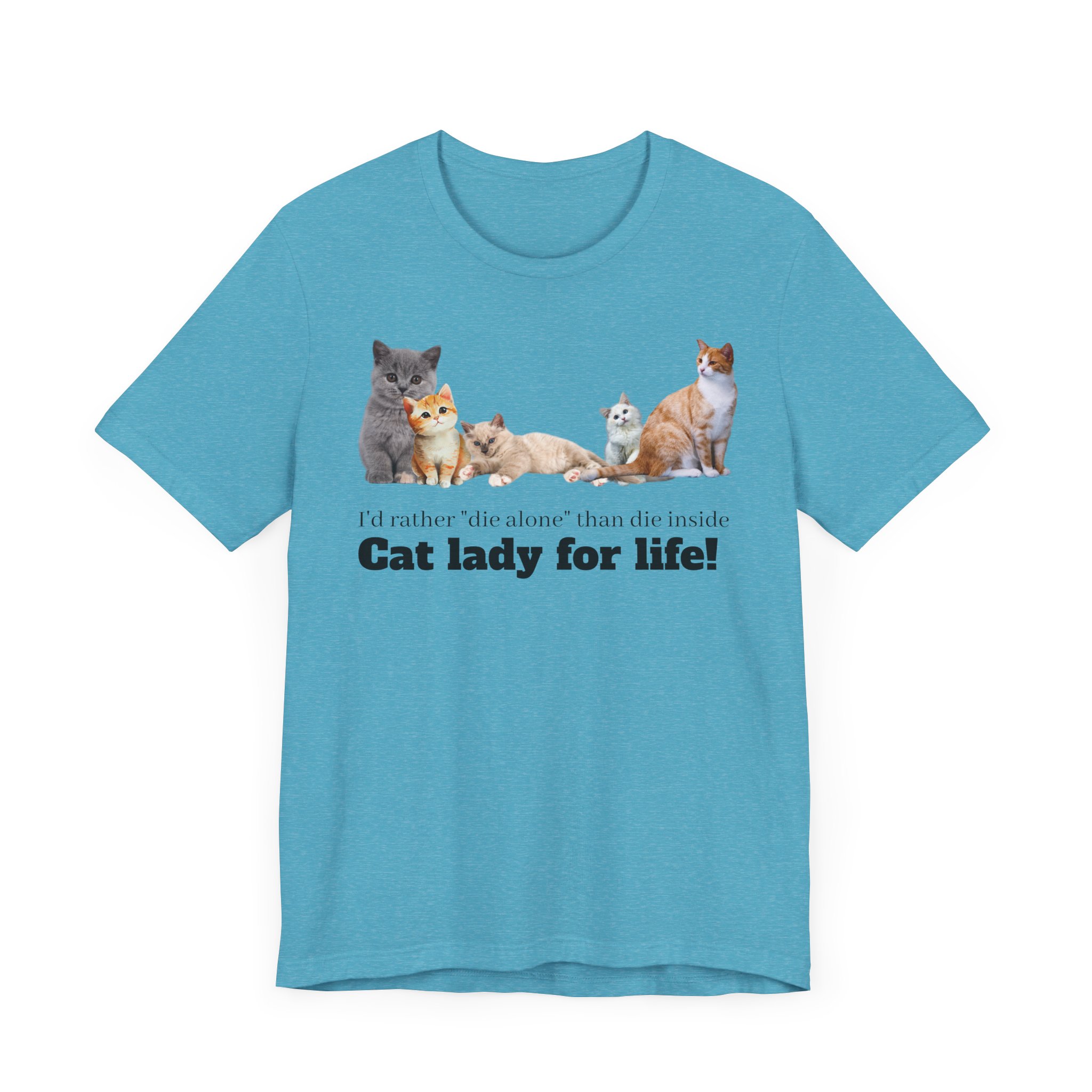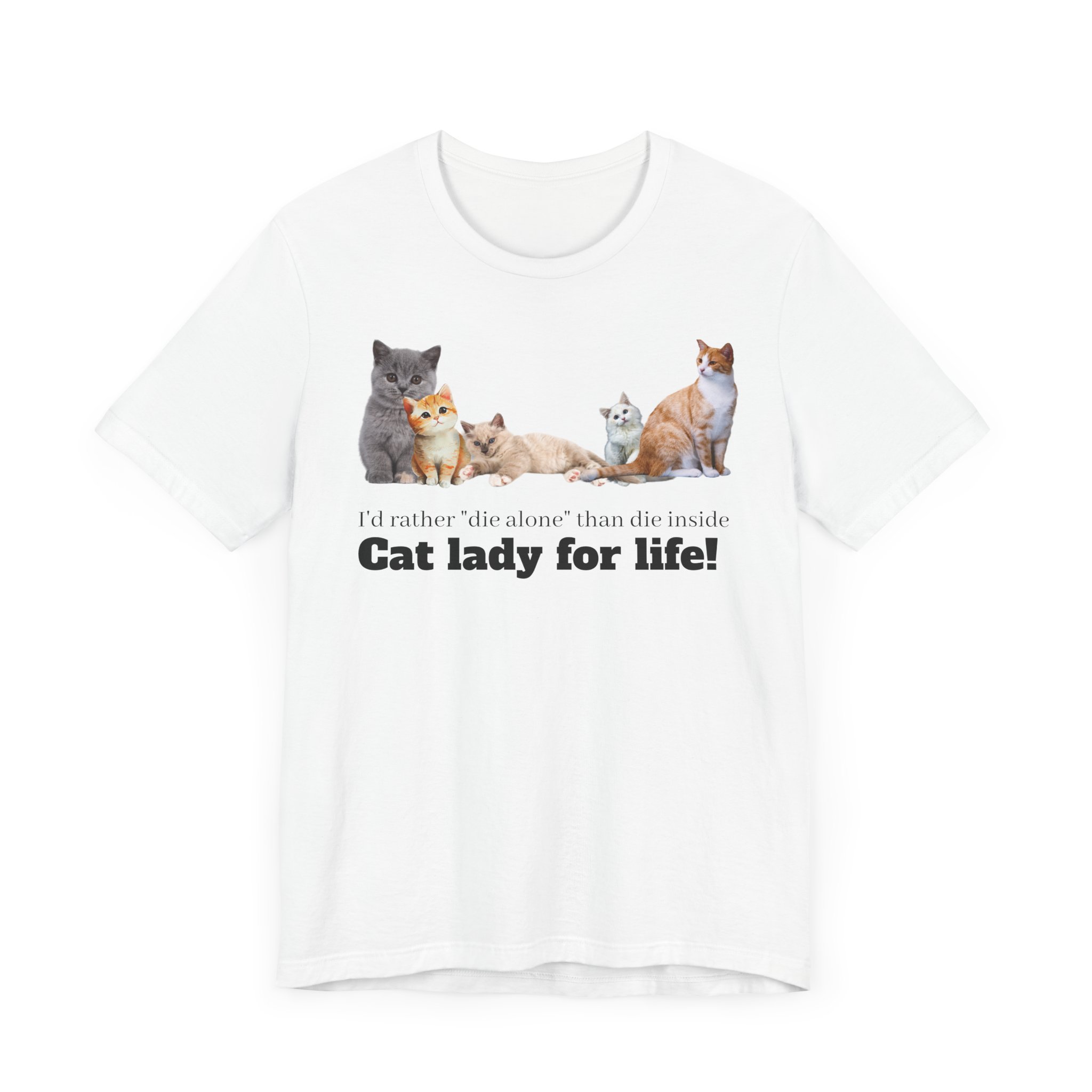 This comfy, cat-tastic tee is a statement piece for the independent woman who chooses to live life on her own terms; with or without cats and definitely without a man. This classic unisex jersey short sleeve tee fits like a well-loved favorite and comes slightly distressed (but in a good way). These t-shirts have-ribbed knit collars and the shoulders are tapered for a fit that softens into you every time you wear it; double side seams help this shirt maintain its shape over multiple launderings, making it a perfect choice for your new favorite shirt. Embrace your girl power and smash the patriarchy because you know that a cats are much better room mates than men anyway. Why buy the cow when you can just buy milk by the carton? Cats love milk don’t they? Either way, there need be no man in the equation