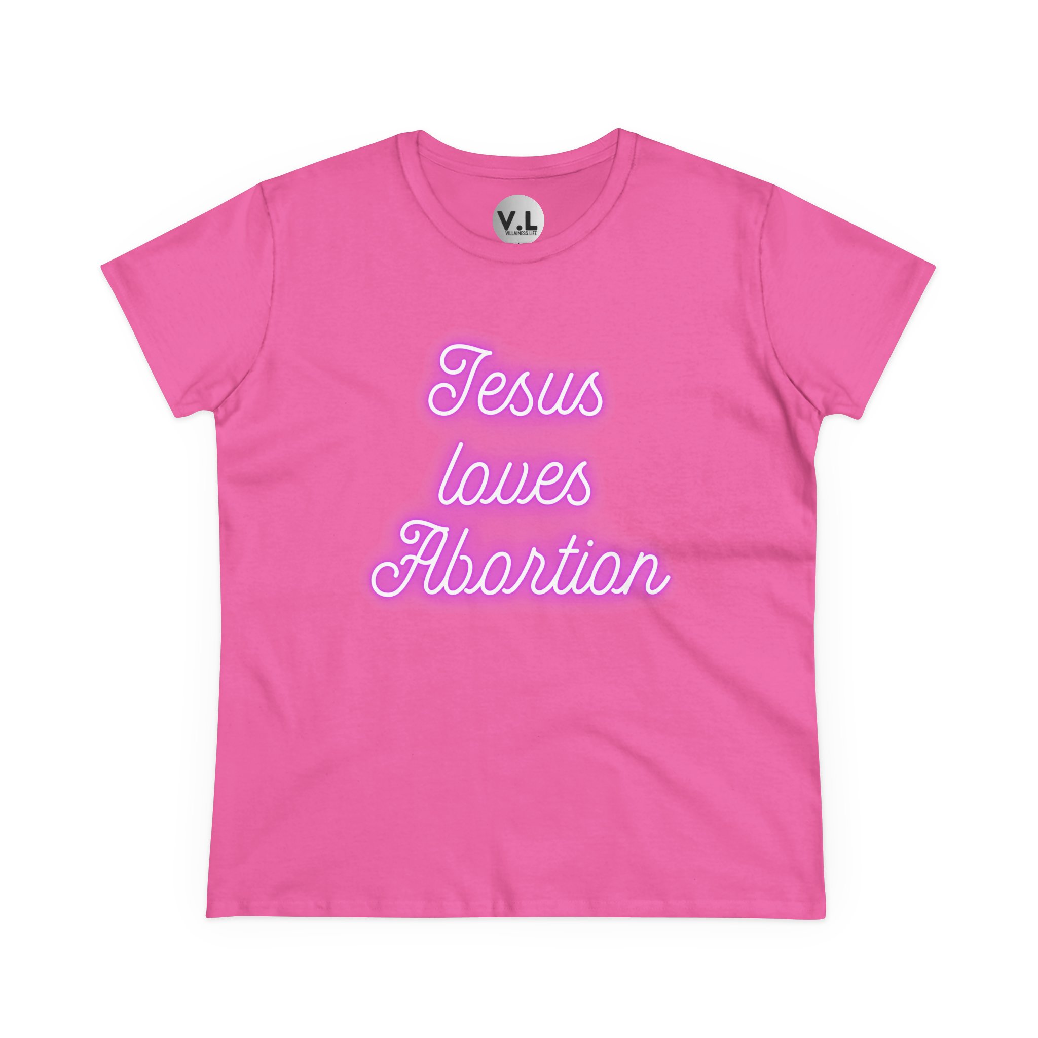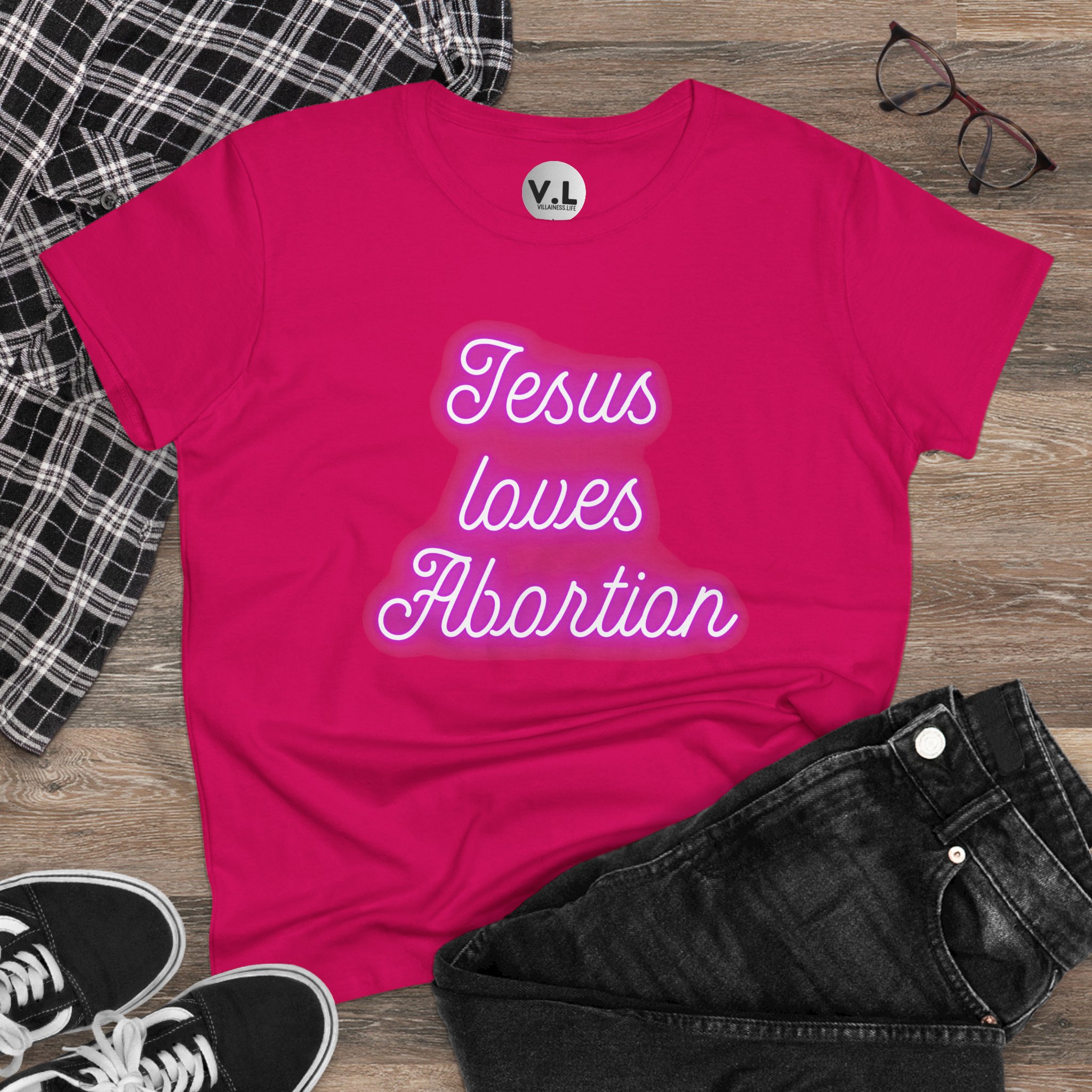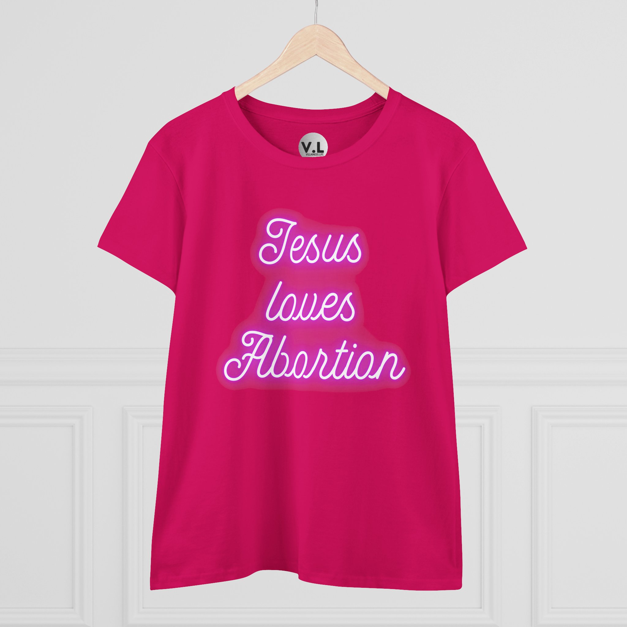 Jesus Loves Abortion in pink neon lights, Women’s rights shirt for women’s day 2024 protest shirt roe v wade christian extremists