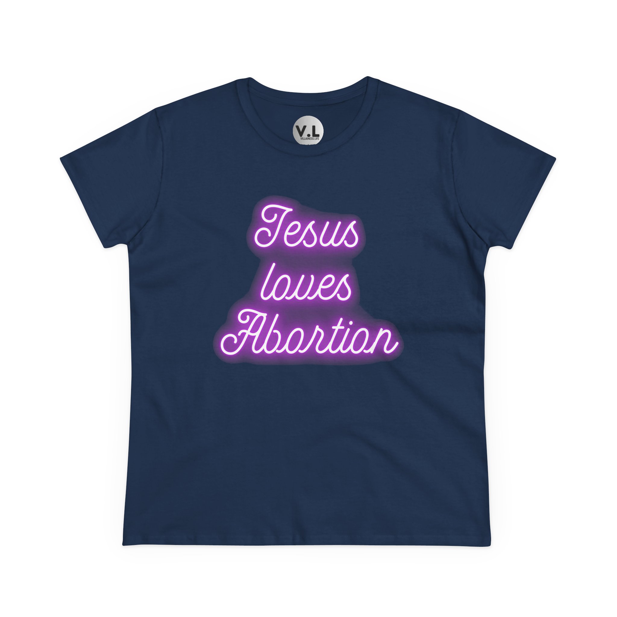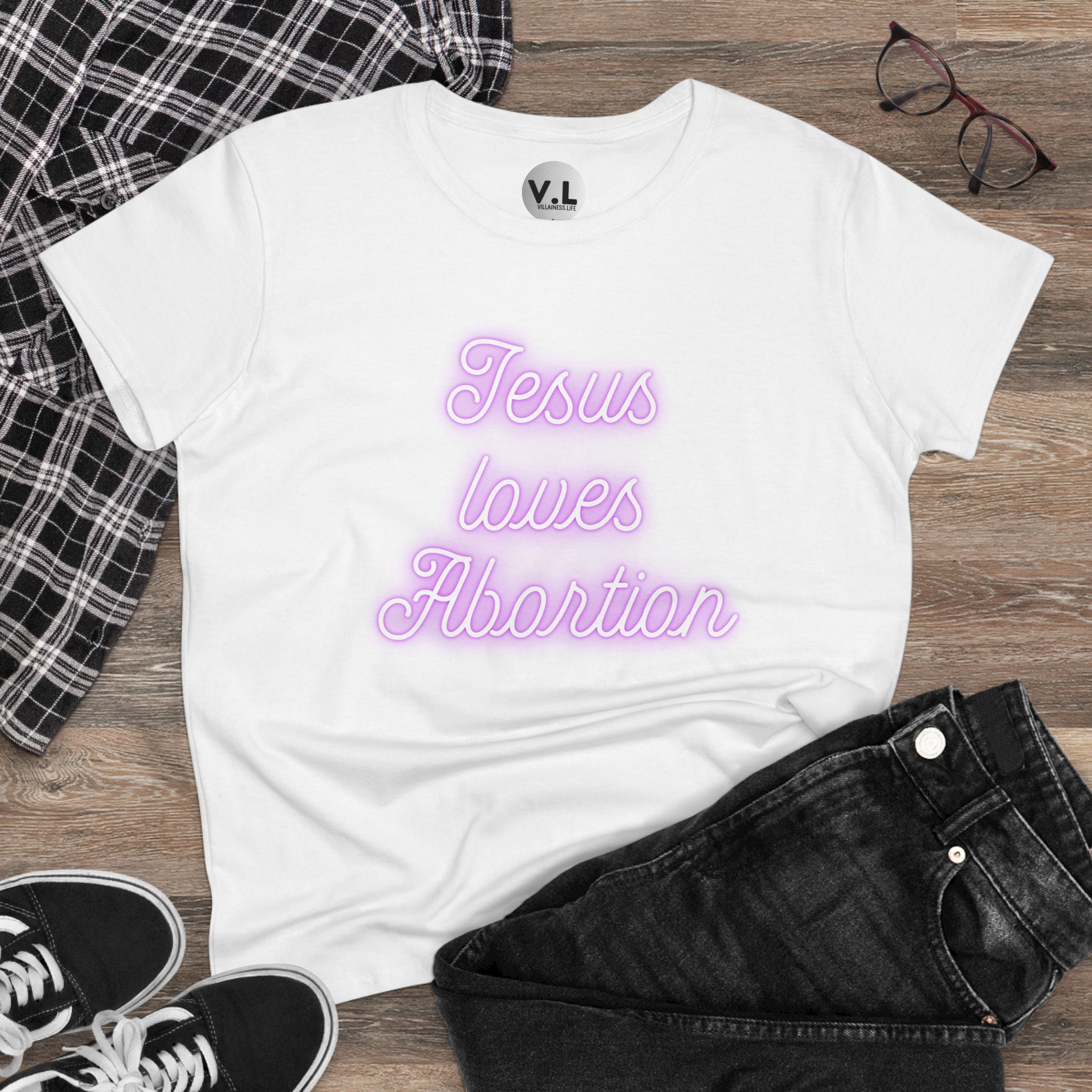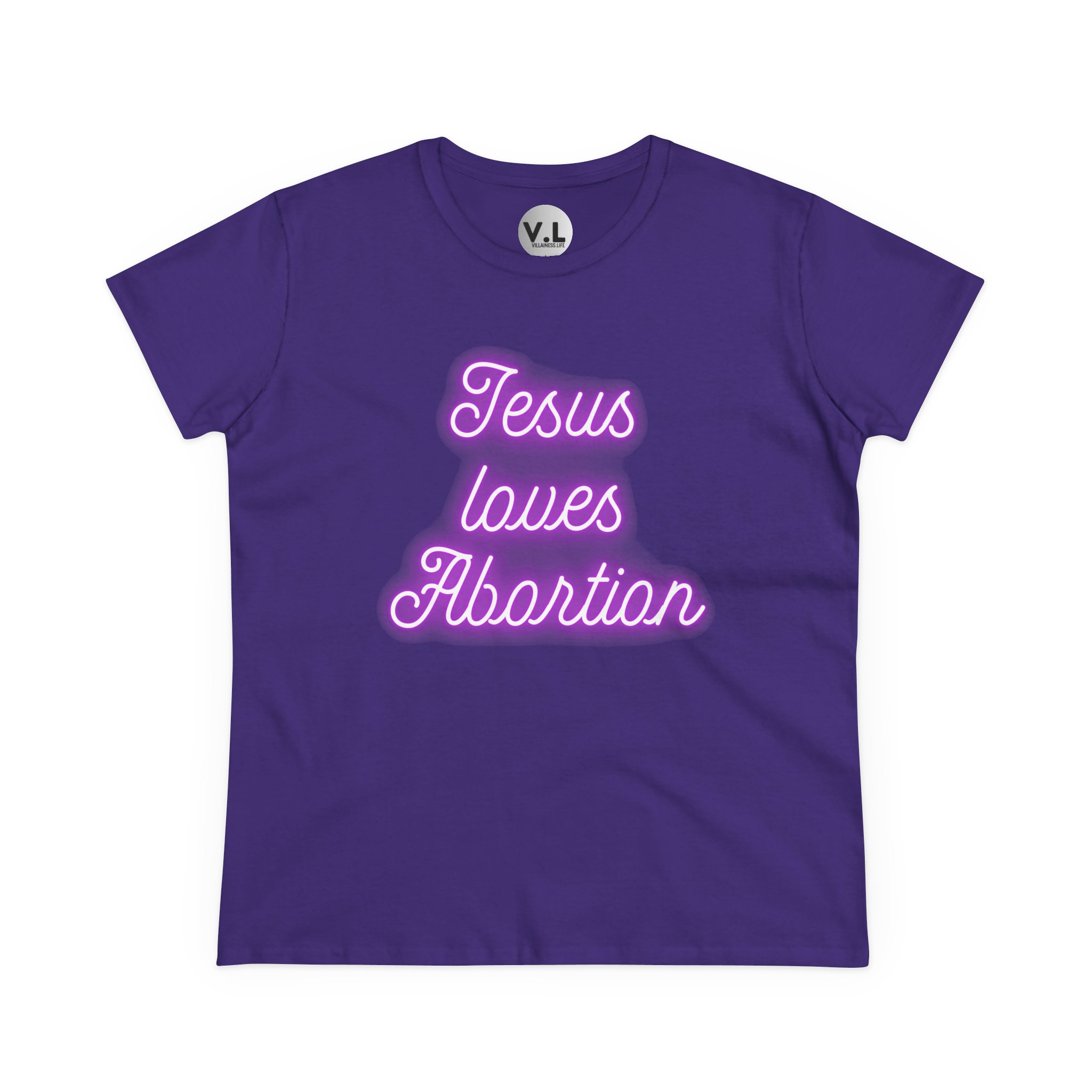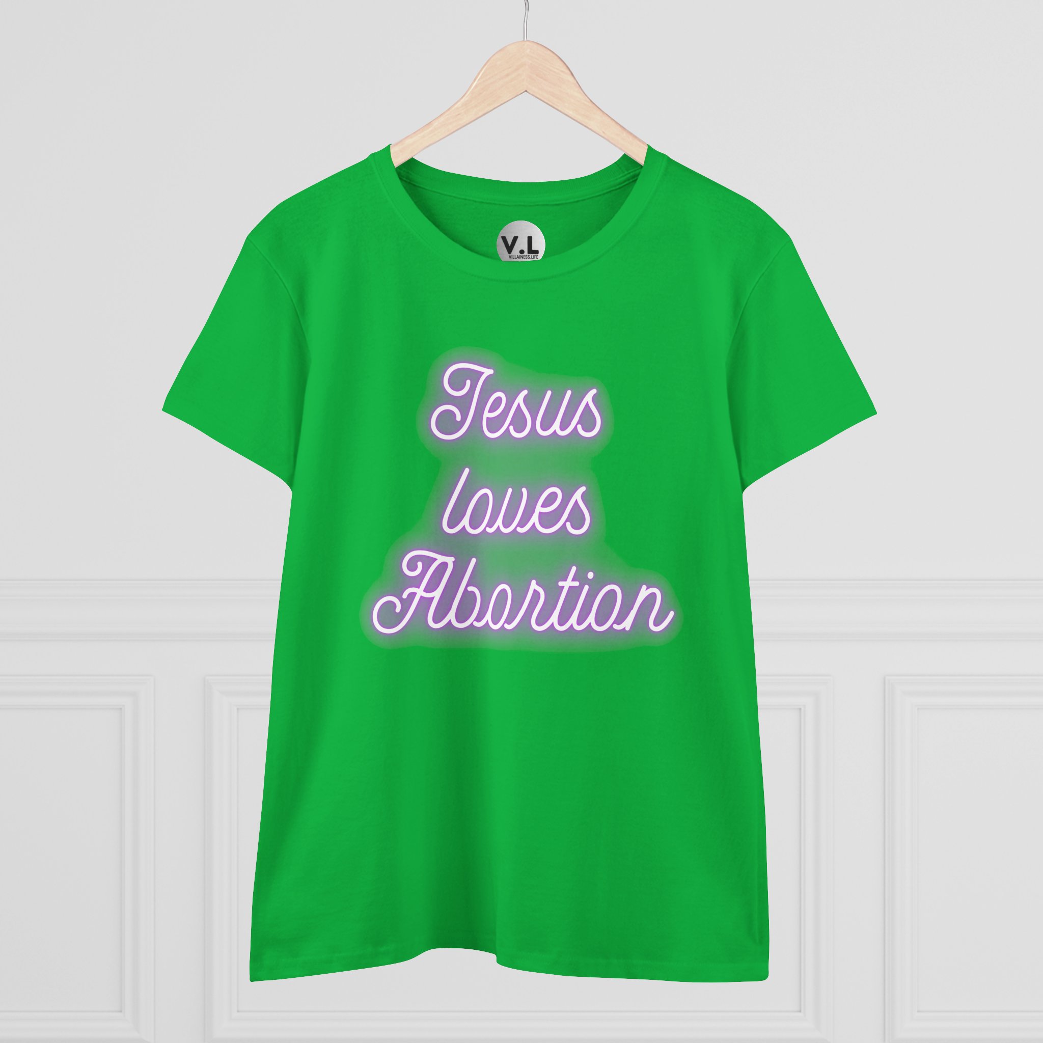 Jesus Loves Abortion in pink neon lights, Women’s rights shirt for women’s day 2024 protest shirt roe v wade christian extremists